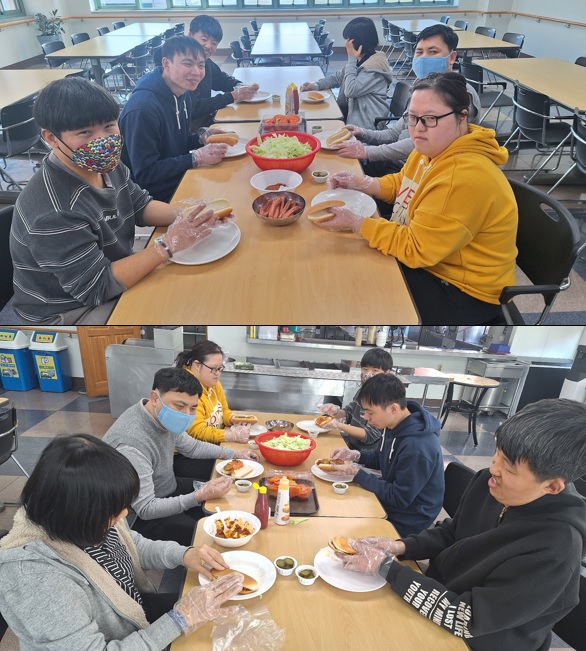 2월 요리 프로그램에서는 핫도그 샌드위치를 만들어봤습니다.