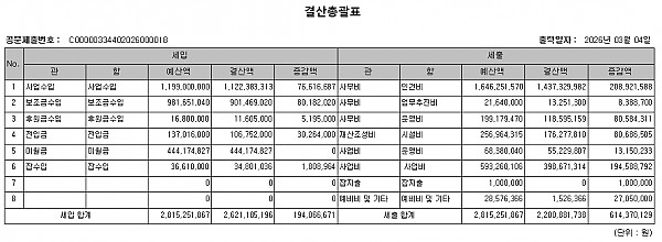 2. 공고사항 : 2025년 광주북구장애인직업재활센터 세입·세출 결산