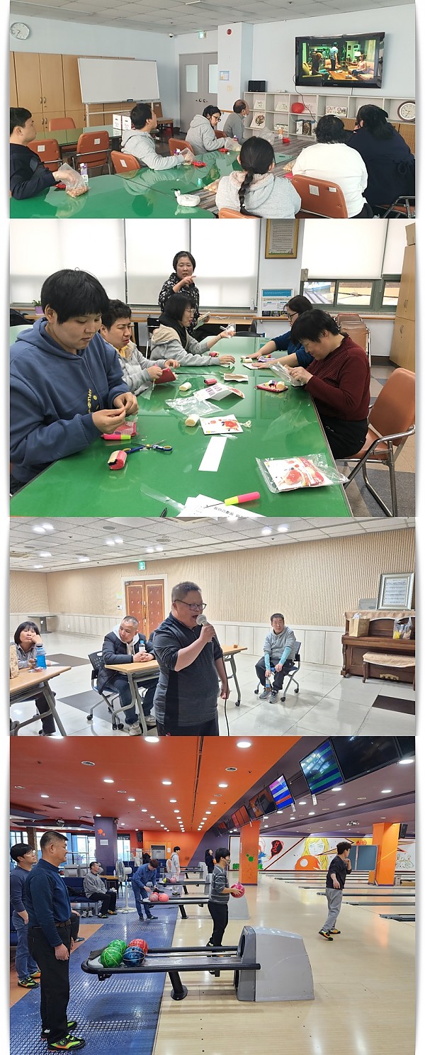 11월 이용인 동아리활동 페이지 정보 작성자 관리자 작성일24-12-23 16:48 조회1,821회 댓글0건 이전글 다음글 목록 본문 이번 동아리활동은 영화관람, 공예, 노래연습을 진행하였고 기존 풋살은 날씨 영향으로 다른 종목으로 대체되어 볼링으로 진행하였습니다. 이전글 다음글 목록