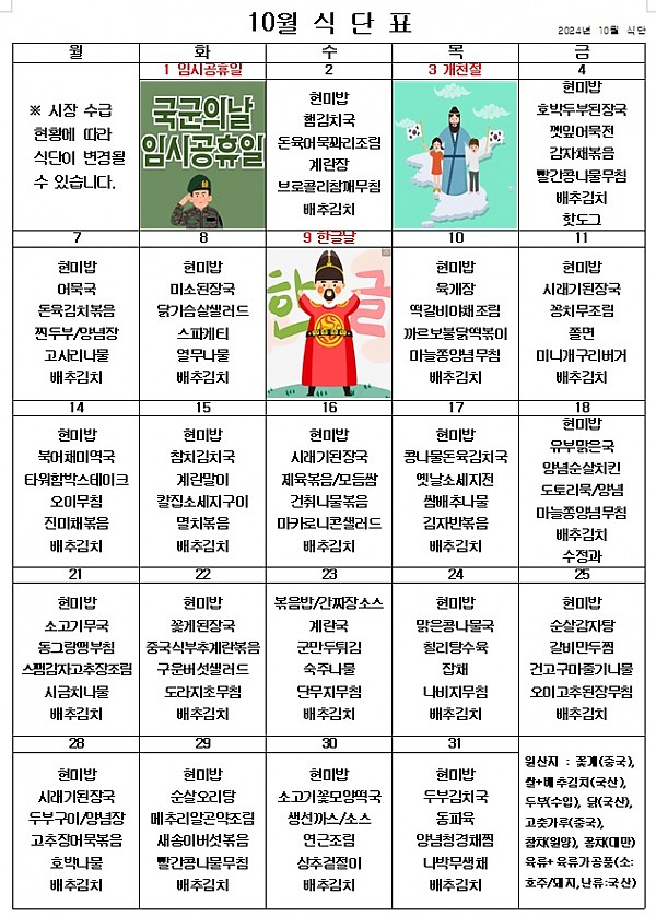 2024년 10월 식단표 ^^