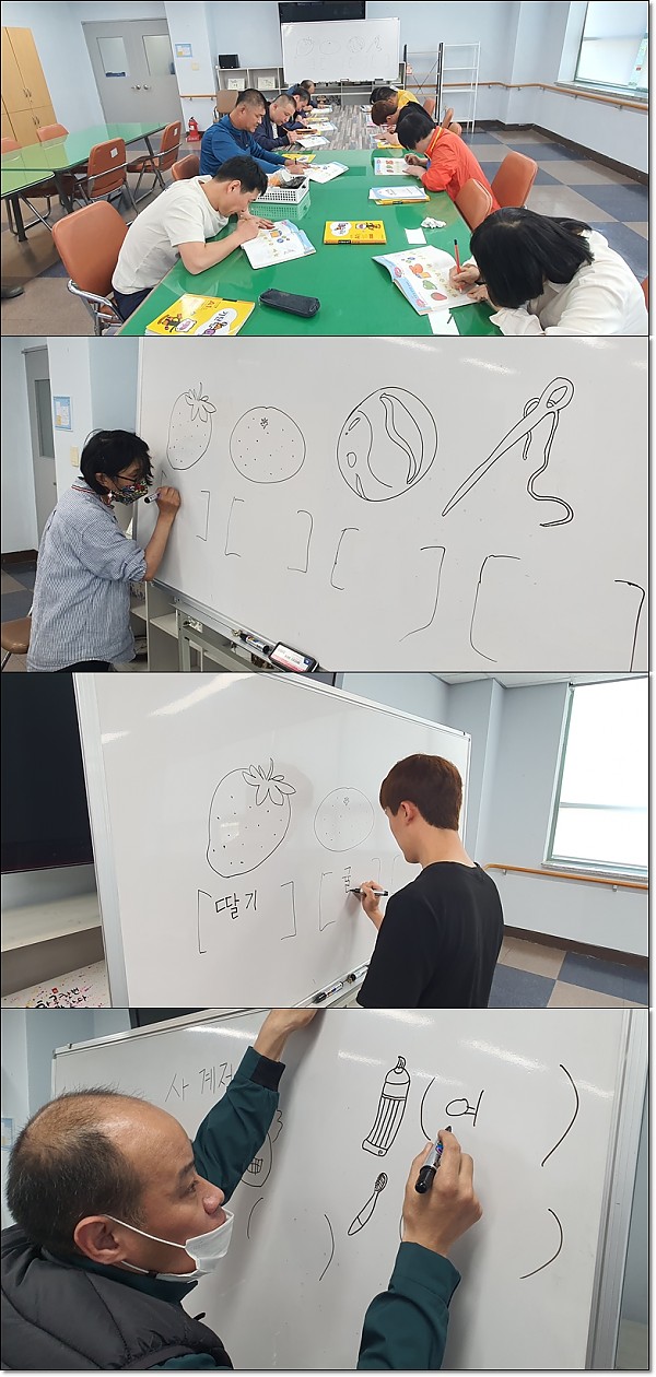 5월 기초학습 프로그램(기초반) 페이지 정보 작성자 관리자 작성일24-06-07 16:54 조회3,057회 댓글0건 이전글 다음글 목록 본문 이번 학습 내용은 그림을 보면서 읽고 쓰기를 진행하였습니다. 단순 글자를 읽는 것보다 그림을 보고 읽고 쓰는 것이 효과적이였습니다. 이전글 다음글 목록