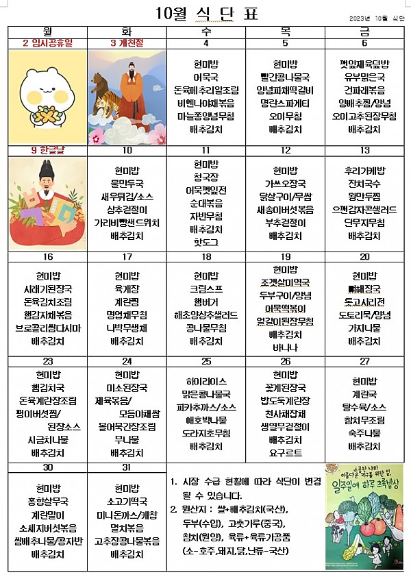 2023년 10월 식단표