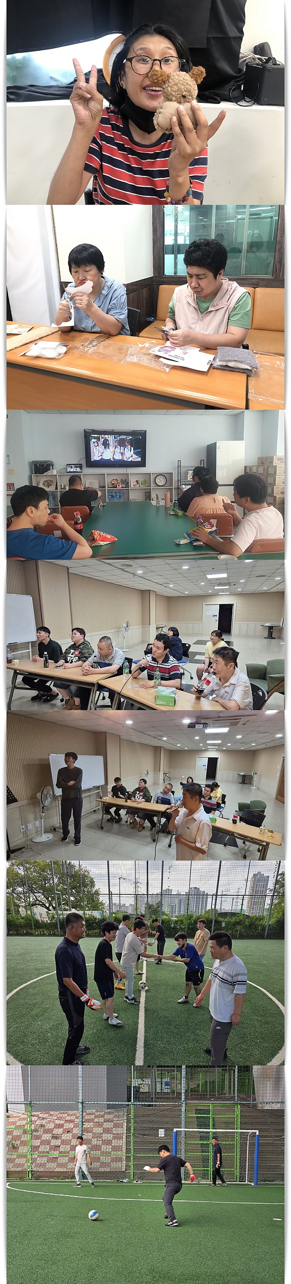풋살, 영화관람, 공예. 노래연습을 진행했으며 이용인이 스스로 결정하고 진행할 수 있도록 돕고 있습니다.