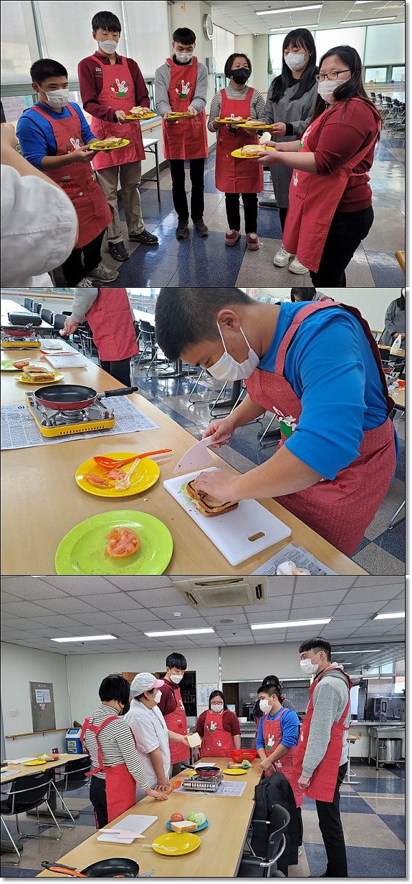 요리 프로그램 페이지 정보 작성자 관리자 작성일22-03-03 16:14 조회4,063회 댓글0건 이전글 다음글 목록 본문 이번 시간에는 샌드위치를 만들어 보았습니다. 요리도 즐겁고 맛도 좋은 시간이 되었습니다. 이전글 다음글 목록