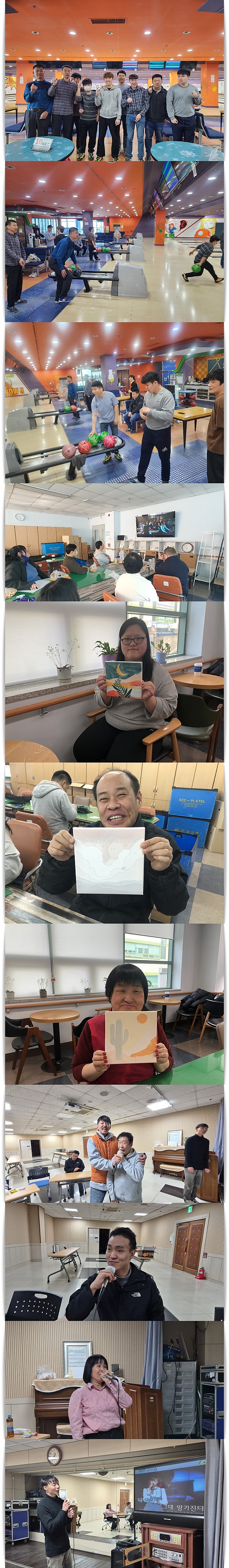 3월 이용인동아리활동 페이지 정보 작성자 관리자 작성일25-04-09 09:06 조회1,116회 댓글0건 이전글 다음글 목록 본문 이번 동아리활동은 볼링, 공예, 영화관람, 노래연습을 진행하였으며 이용인이 주최가 되어 활동할 수 있도록 지원하고 있습니다. 이전글 다음글 목록