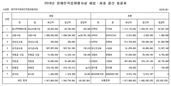 2018 광주북구장애인직업재활센터 결산 공고