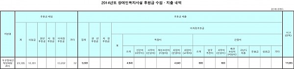 2014년 후원금 수입 및 사용내역 결과 공고 페이지 정보 작성자 배지연 작성일15-03-13 11:43 조회13,546회 댓글0건 이전글 다음글 목록 본문 2014년 광주북구장애인직업재활센터 후원금 수입 및 사용내역 결과를 공고합니다. 이전글 다음글 목록