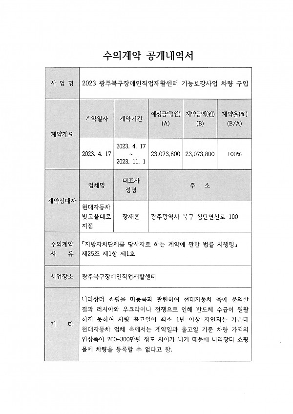 2023 기능보강사업 장비보강 수의계약 공개내역 페이지 정보 작성자 관리자 작성일24-05-10 10:13 조회11,325회 댓글0건 이전글 다음글 목록 본문 2023 기능보강사업 장비보강 수의계약 공개내역 이전글 다음글 목록